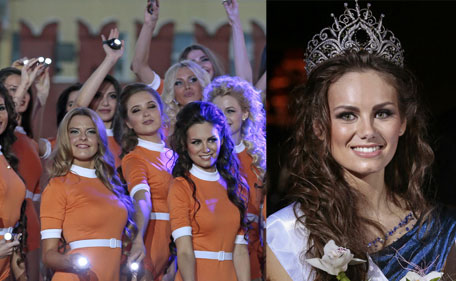Daria Ulyanova, 21, from Moscow, poses for photographers after she was named as the winner of "Miss Moscow" beauty contest in Moscow, Russia, Sunday, June 2, 2013. (AP)