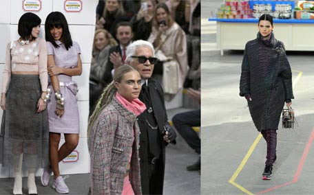A model walks in a supermarket set up for the Chanel 2014/2015 Autumn/Winter ready-to-wear collection fashion show. (AFP)