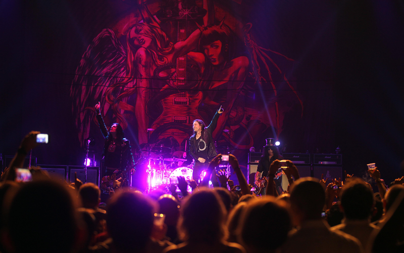 Slash rocked a packed house at the Dubai Tennis Stadium