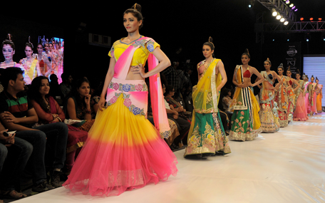 Models showcase the collection of designer, Mohit Falod on the first day of the India Jewellery and Fashion Week at the YMCA International Centre in Ahmedabad on September 19, 2013. Designers from across India are exhibiting their creations for 4 days. AFP