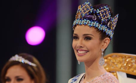 Miss Philippines, Megan Young (R) wears the crown after winning the new Miss World title over 126 beauty contestants in the Miss World 2013 finals in Nusa Dua, in Indonesia's resort island of Bali on September 28, 2013. (AFP)