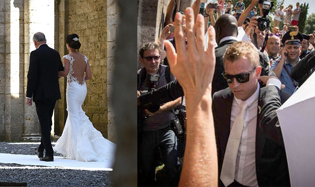 Maurizio Arrivabene, current team principal of the Scuderia Ferrari Formula One team, and his wife Stefania Bocchi arrive in the Abbey of San Galgano, a Cistercian monastery between the towns of Chiusdino and Monticiano, for the wedding of Ferrari driver Kimi Raikkonen with Minttu Virtanen, in the province of Siena, Tuscany. (AP)