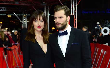 US actor Jamie Dornan and US actress Dakota Johnson pose for photographers on the red carpet as they arrive for the screening of Fifty 'Shades of Grey' as part of Berlinale Special Gala at the 65th Berlin International Film Festival Berlinale in Berlin, on February 11, 2015. (AFP)