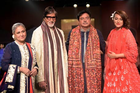 Jaya Bachchan, Amitabh Bachchan, Shatrughan Sinha and Sonakshi Sinha. (AFP)