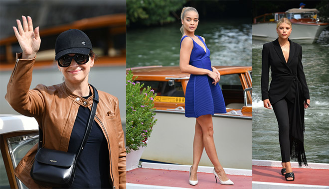 Sofia Richie poses after she arrived by taxi boat on August 28, 2019 during the 76th Venice Film Festival at Venice Lido.