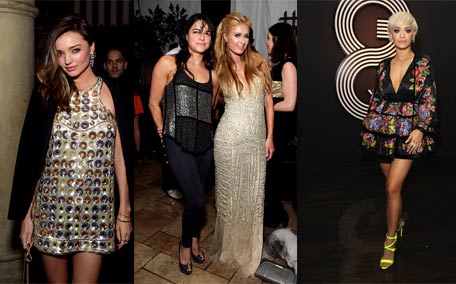 Richelle Rodriguez and Paris Hilton attend the Warner Music Group annual Grammy celebration at Chateau Marmont. (Getty Images)