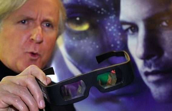 Canadian film director James Cameron shows 3D glasses prior to a show of his movie"Avatar" on the side line of the World Economic Forum (WEF) annual meeting in 2010 in Davos. Cameron's Avatar was a breakthrough 3D megahit. (AFP)