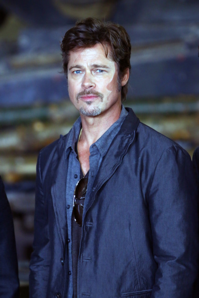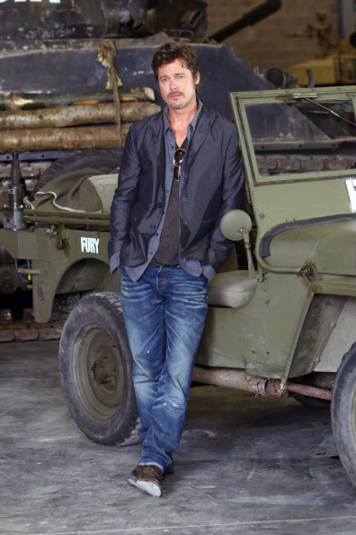 Brad Pitt arrives for a photocall for the film 'Fury' at Bovington Tank Museum. Pic: Getty Images
