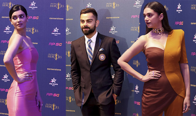 Indian cricket team captain Virat Kohli poses as he arrives for an Indian Cricket Heroes red carpet event.