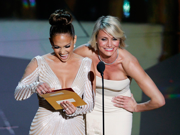 Presenters Jennifer Lopez (L) and Cameron Diaz announce the winner for Best Achievement in Make Up at the 84th Academy Awards in Hollywood, California, February 26, 2012. (REUTERS)