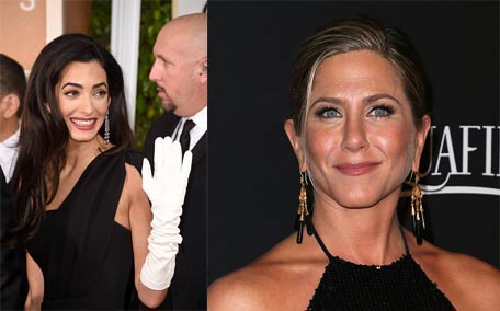Jennifer Aniston has praised human rights lawyer, Amal Clooney - who tied the knot with George Clooney in September last year - for handling her first Hollywood event, the Golden Globes, so well.