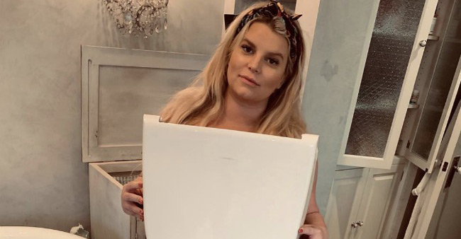 The 38-year-old singer and actress is currently expecting her third child with her husband Eric Johnson, and took to Instagram on Tuesday to reveal that even going to the toilet is risky business for her, as she managed to break her toilet seat just from leaning back against it.