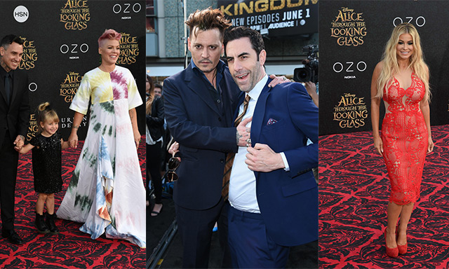 Pink and Mia Wasikowska arrive at the premiere of "Alice Through the Looking Glass" at the El Capitan Theatre. (AP)
