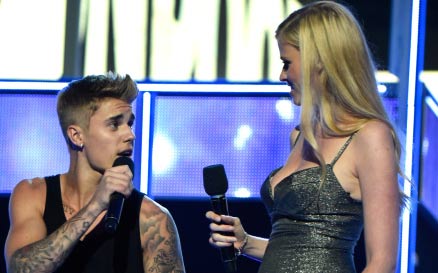Uunable to make the ceremony - which took place in Glasgow, Scotland - Justin thanked his fans via video.
