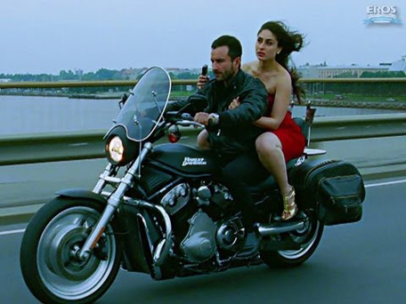 Saif plays a slick, stylish and a daredevil secret agent (Agent Vinod) along sweetheart Kareena Kapoor who plays the character, Iram. Kareena has also done some deadly stunts in the film and later revealed that ation is not her cup of tea.