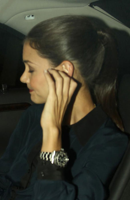 Katie was photographed in New York City as she left a 'Project Runway' taping and noticeably had no jewellery on her left ring finger as she lifted her hand to touch her hair while inside a car.