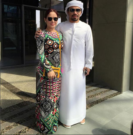 From visiting the Burj Khalifa, the Dubai Mall, Burj Al Arab, to dressing up in UAE national dress for lunch in Hyatt Regency at Dubai Creek Heights, the Pacquiaos did it all.