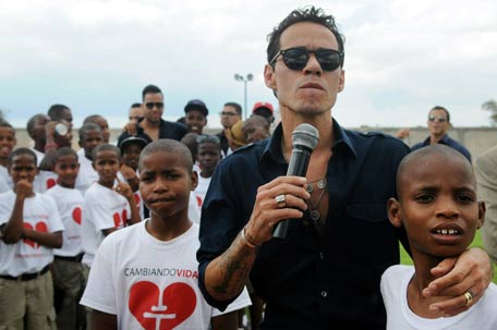 Marc Anthony and Romeo Santos attend the inauguration of a new orphanage Anthony's foundation built in La Romana, Dominican Republic. Anthony funded the orphanage through his Foundation Maestro Cares, which will also pay for medical attention and education for the orphans. (AP)