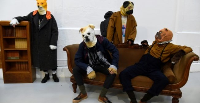 French designer Julien David sent out his models wearing dog's heads, from a macho, man-spreading Doberman to an intellectual whippet and a splayed poodle in dungarees.