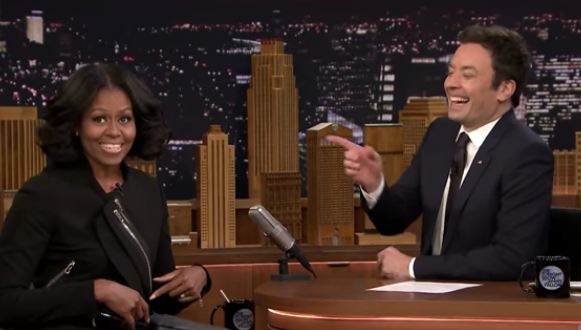 In the episode, the first lady was the main event. With good humor and witty comebacks, Obama wrote thank you notes on Fallon's signature segment, played "Catchphrase" with Jerry Seinfeld and Dave Chappelle, and received a serenade from Stevie Wonder. She also surprised fans recording her goodbyes, bringing more than one of them to tears.