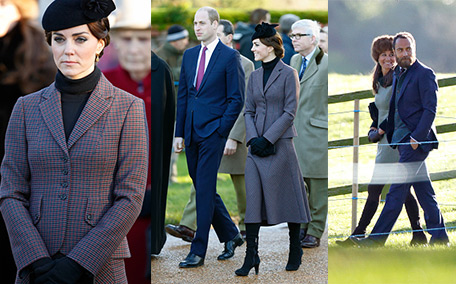 Sophie Carter, James Meade and Catherine, Duchess of Cambridge attend the Sunday service at St Mary Magdalene Church, Sandringham. (Getty Images)