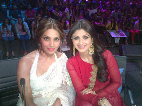 Indian actress Bipasha Basu (L) with 'Nach Baliye 5' judge Shilpa Shetty. (Twitter)