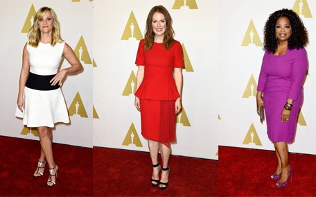 Academy Awards Nominees including actors Michael Keaton, Eddie Redmayne, J.K. Simmons, Julianne Moore, Emma Stone, Ellar Coltrane, Laura Dern, Reese Witherspoon, Steve Carell, Patricia Arquette, Bradley Cooper and directors Richard Linklater, Morten Tyldum and Clint Eastwood attend the 87th Annual Academy Awards Nominee Luncheon. (Getty Images)