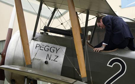 Prince William sits in the cockpit of an old Sopworth Pup single seater biplane during a visit to the Omaka Aviation Heritage Centre in the New Zealand city of Blenhiem. (AFP)