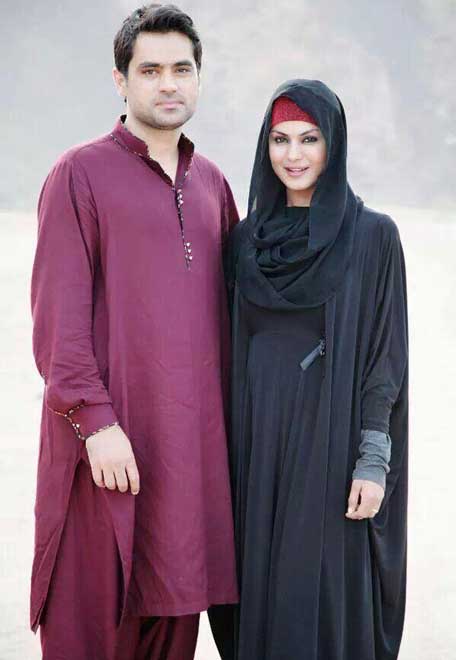 Pakistani actress Veena Malik with her husband Asad Bashir Khan Khattak. (Twitter)