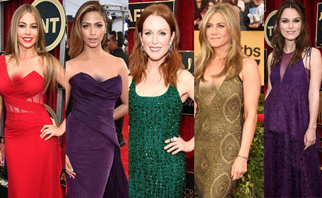 From red to gold and emerald green, all shades were splashed this year at the Screen Actors Guild Awards night.