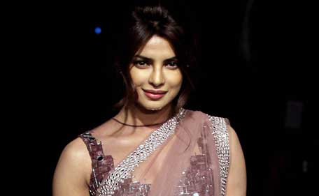 Indian Bollywood actress Priyanka Chopra showcases a creation by designer Varun Bahl on the final day of Lakme Fashion Week (LFW) Winter/Festival 2014 in Mumbai on August 24, 2014. (AFP)