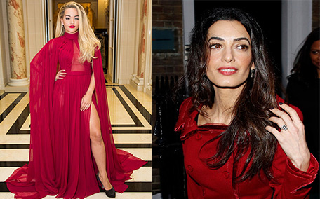 Amal, 37, cut a conservative figure as she stepped out in chic red co-ords to support deposed Maldives president Mohamed Nasheed. (Getty Images)