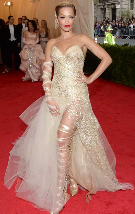 Singer Rita Ora arrives at the Metropolitan Museum of Art Costume Institute Gala Benefit celebrating the opening of "Charles James: Beyond Fashion" in Upper Manhattan, New York May 5, 2014. (REUTERS)
