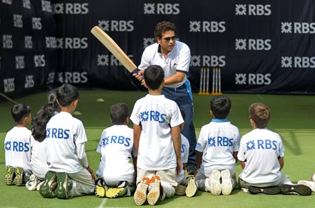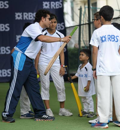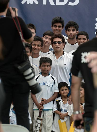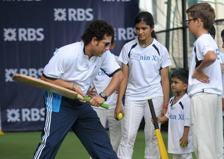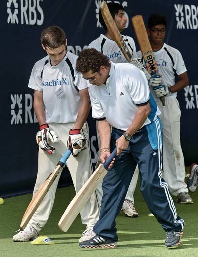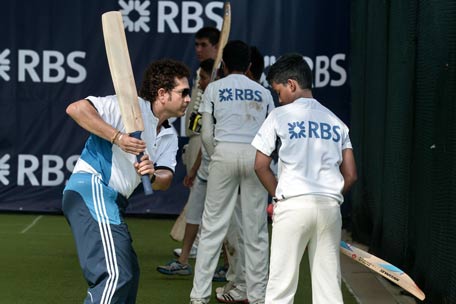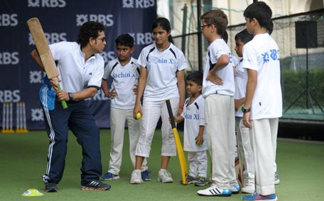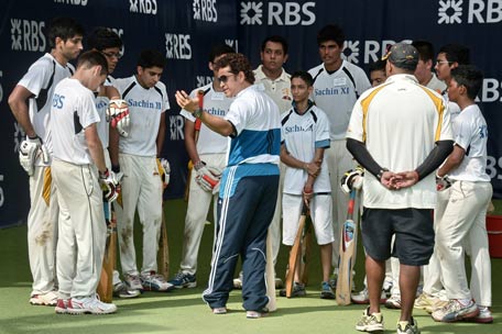 Sachin Tendulkar holds a training session for young players at the Singapore Cricket Club. (AFP)