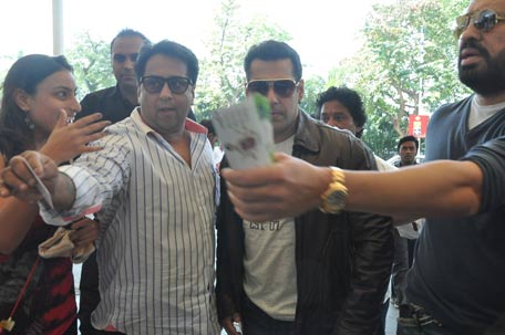 Photographers in India have lifted the ban imposed on Bollywood actor Salman Khan. The actor was clicked leaving for Delhi for his shoot.
