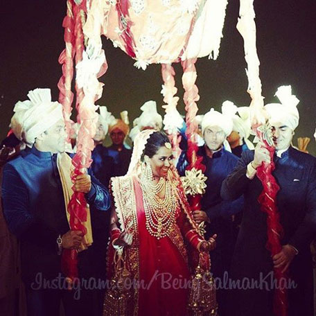 Bollywood superstar Salman Khan shares sister Arpita Khan's wedding pictures on Social media.