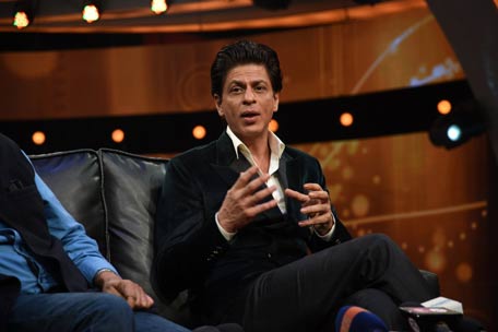 Shah Rukh Khan poses during a press interaction to launch a new television show “India Poochega – Sabse Shaana Kaun?” in Mumbai.