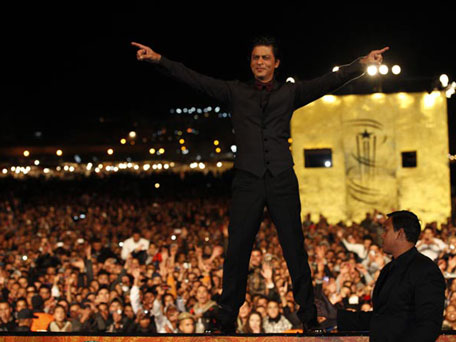Shah Rukh Khan performs at Place Jemaa el Fna during the 12th Marrakech International Film Festival on December 1, 2012, in Marrakech. (AFP)