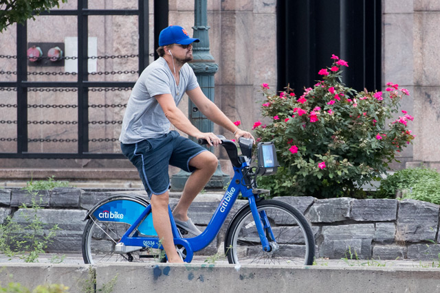 Leonardo DiCaprio seen riding bicycle in New York City.