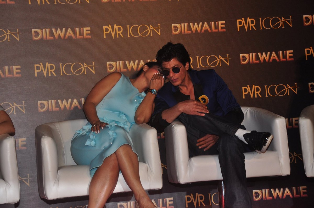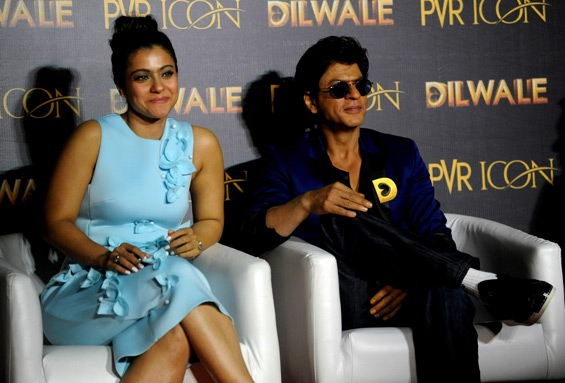 Kajol Devgn and Shah Rukh Khan take part in a promotional event for the forthcoming Hindi film 'Dilwale' directed by Rohit Shetty and produced by Gauri Khan in Mumbai. (AFP)