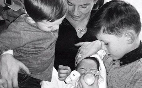 Coleen Rooney shared the first picture of her three sons all together, with her eldest son Kai, six, feeding newborn son Kit, as two-year-old Klay watched on. (Twitter)