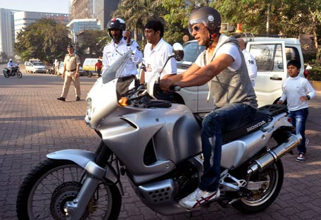 Akshay Kumar attends a motorcycle safety awareness rally in Mumbai. (AFP)