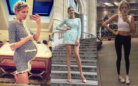 Russian supermodel Elena Perminova has chronicled her pregnancy weight gain and post-baby weight loss program through Instagram, reports UK daily Metro.