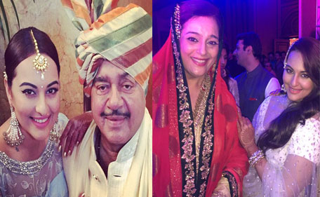 Groom's father Shatrughan Sinha was seen greeting guests, while Sonakshi was happily clicking pictures and posing with everyone.