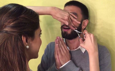 Deepika Padukone takes the matter into her own hands and snips off Ranveer Singh's moustache. (Instagram)