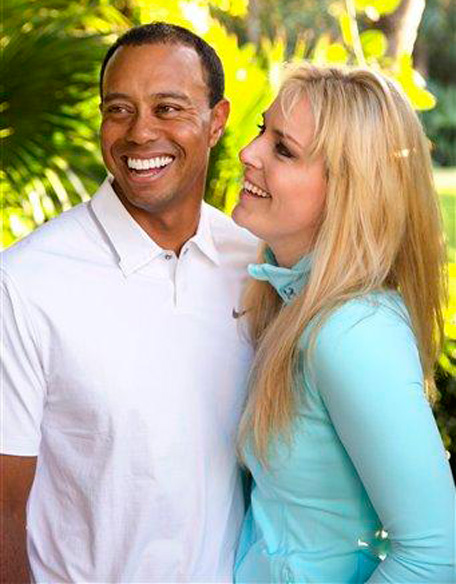 In this 2013 photo provided by Tiger Woods and Lindsey Vonn, golfer Tiger Woods and skier Lindsey Vonn pose for a portrait. Two months after rumors began circulating in Europe, Woods and Vonn posted separate items on their Facebook pages Monday, March 18, 2013, to announce their relationship. (AP Photo/Courtesy Tiger Woods/Lindsey Vonn)