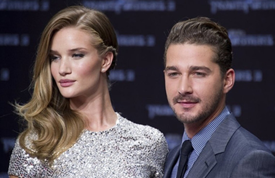 English actress Rosie Huntington-Whiteley and US actor Shia Labeouf pose for photographers as they arrive for the European premiere of US film Transformers 3 in Berlin. (AFP)