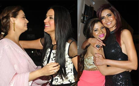 Sambhavna Seth and Karishma Tanna pose for a photograph during the 'Bigg Boss Seaon 8' final in Lonavala. (AFP)