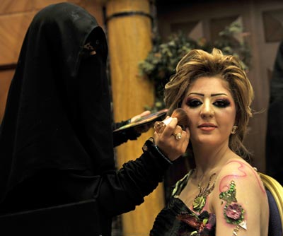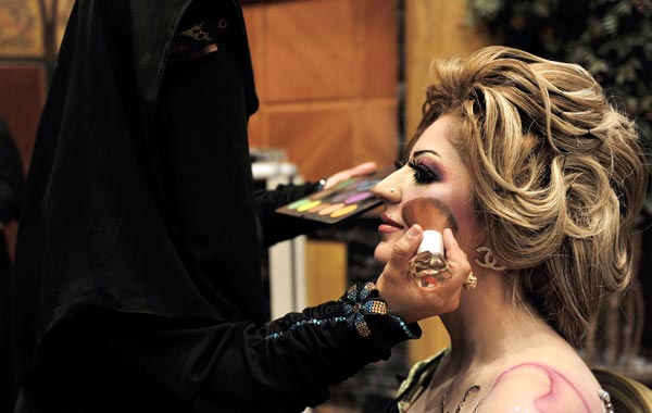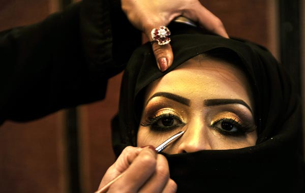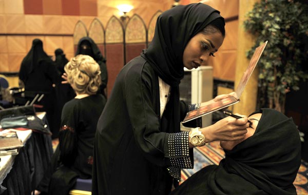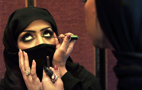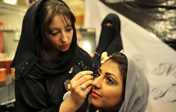 First time in Saudi Arabia: The 2010 Cosmetic Expo A Saudi woman applies makeup on a model during a beauty and style competition on the sidelines of the 2010 Cosmetic Expo, a four-day exhibition held for the first time in Saudi Arabia, at a hotel in the coastal city of Jeddah. (AFP) A Saudi woman applies makeup on a model during a beauty and style competition on the sidelines of the 2010 Cosmetic Expo, a four-day exhibition held for the first time in Saudi Arabia, at a hotel in the coastal city of Jeddah. (AFP) A Saudi woman applies makeup on a model during a beauty and style competition on the sidelines of the 2010 Cosmetic Expo, a four-day exhibition held for the first time in Saudi Arabia, at a hotel in the coastal city of Jeddah. (AFP) Saudi women put accessories on a model during a beauty and style competition on the sidelines of the 2010 Cosmetic Expo, a four-day exhibition held for the first time in Saudi Arabia, at a hotel in the coastal city of Jeddah. (AFP) A Saudi woman applies makeup on a model during a beauty and style competition on the sidelines of the 2010 Cosmetic Expo, a four-day exhibition held for the first time in Saudi Arabia, at a hotel in the coastal city of Jeddah. (AFP) A Saudi woman applies makeup on a model during a beauty and style competition on the sidelines of the 2010 Cosmetic Expo, a four-day exhibition held for the first time in Saudi Arabia, at a hotel in the coastal city of Jeddah. (AFP) A Saudi woman applies makeup on a model during a beauty and style competition on the sidelines of the 2010 Cosmetic Expo, a four-day exhibition held for the first time in Saudi Arabia, at a hotel in the coastal city of Jeddah. (AFP) A Saudi woman applies makeup on a model during a beauty and style competition on the sidelines of the 2010 Cosmetic Expo, a four-day exhibition held for the first time in Saudi Arabia, at a hotel in the coastal city of Jeddah. (AFP) A Saudi woman applies makeup on a woman on the sidelines of a beauty and style competition during the 2010 Cosmetic Expo, a four-day exhibition held for the first time in Saudi Arabia, at a hotel in the coastal city of Jedda. (AFP) Models, whose hair and makeup were styled by Saudi women, pose in front of judges during a beauty and style competition on the sidelines of the 2010 Cosmetic Expo, a four-day exhibition held for the first time in Saudi Arabia, at a hotel in the coastal city of Jeddah. (AFP) Email Facebook Twitter LinkedIn Whats App Pin Interest