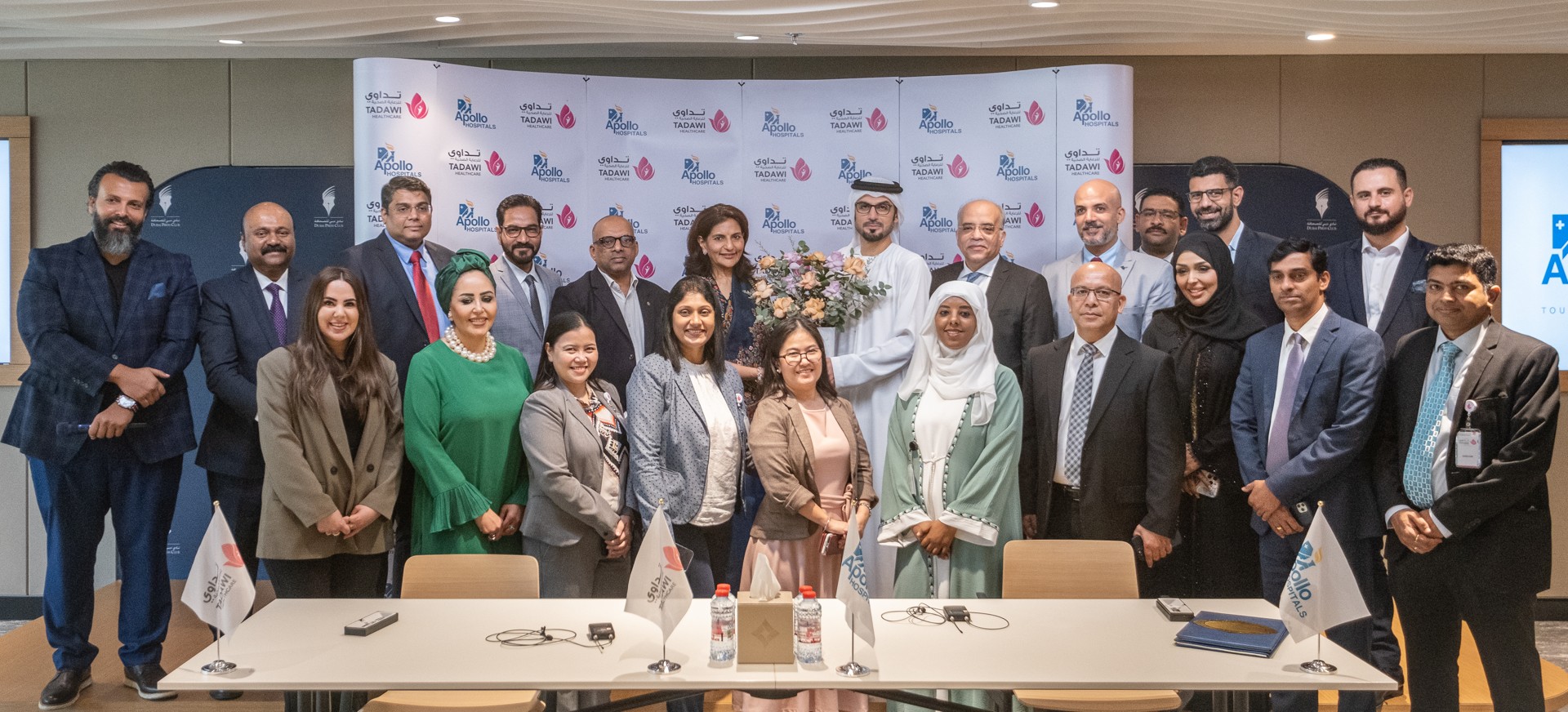 The MoU agreement was signed at the Dubai Press Club, in the presence Marwan Haji Nasser, Chairman and Managing Director of Al Tadawi Healthcare Group, Dr. Preetha Reddy, Vice Chairperson of Apollo Hospitals and a number of officials and doctors.